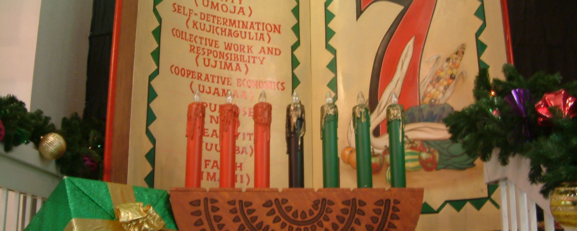 Kwanzaa goes on from December 26th until January 1st, seven whole days. Seven candles are lit during this time to represent the 7 principles of Kwanzaa, Umoja (union), Kujichagulia (self-determination), Ujima (collective work and responsibility), Ujamaa (cooperative economics), Nia (purpose), Kuumba (creativity), and Imani (faith).