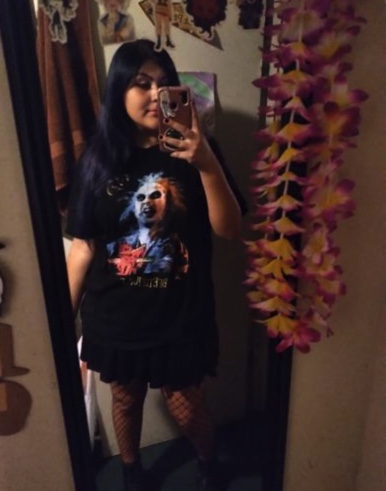 For Morales, her form of fashion and self expression is not only in what she wears, but also in her makeup. She’s always has this amazing eyeliner going on and sometimes she likes to get creative with it. She dresses alternatively, in colors like black and white, and she makes them look good. For her make-up, she likes to mix a natural look with eye makeup boldness, such as different eyeliner designs and sometimes shaping a small heart on her eyebrow. She represents her personality through her clothes, whether that is wearing graphic t-shirts with her favorite characters on it or doing her makeup a little boldly.