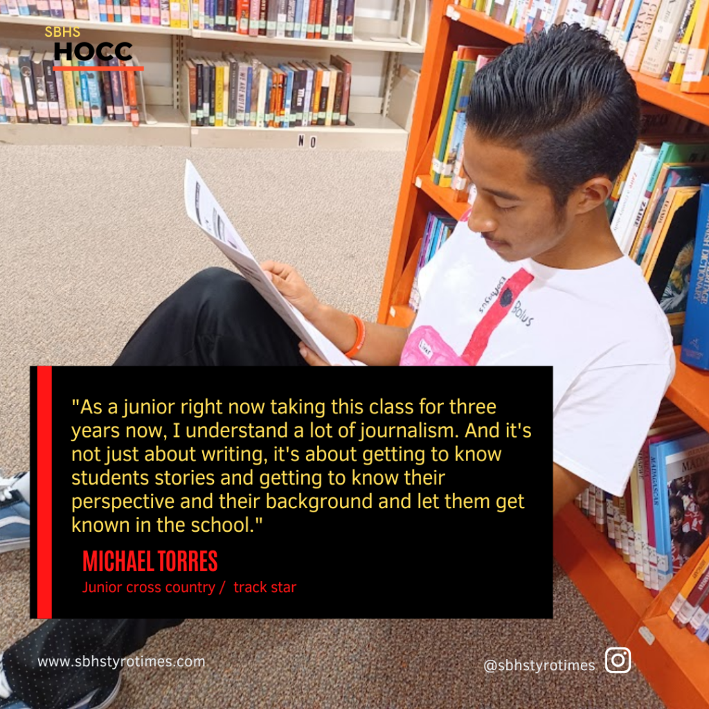 “I don’t like writing, but it’s not just about writing journalism. Mrs. Schmidt told us about photography, learning how to write, learning how to get to know someone, getting to know how to interview people you know. It was getting pretty interesting, you know, because I’m actually writing for a newspaper,” Michael Torres (11) said.