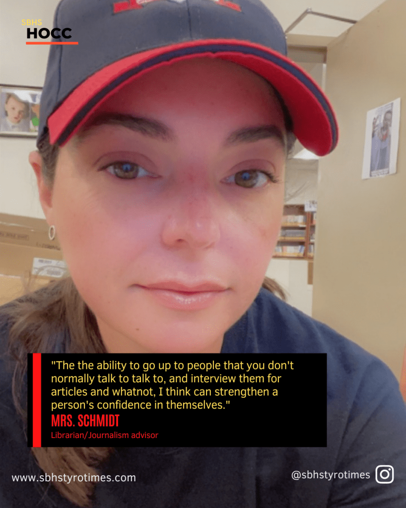 In 2017, Hazael approached Mrs. Schmidt about the journalism program and asked if she could be the advisor. In 2019, it officially became a class as a G elective and can be specially requested as a pathway. After partnering up with the Digitech class, Mr. Press represented SBHS journalism with his newsboy hat.