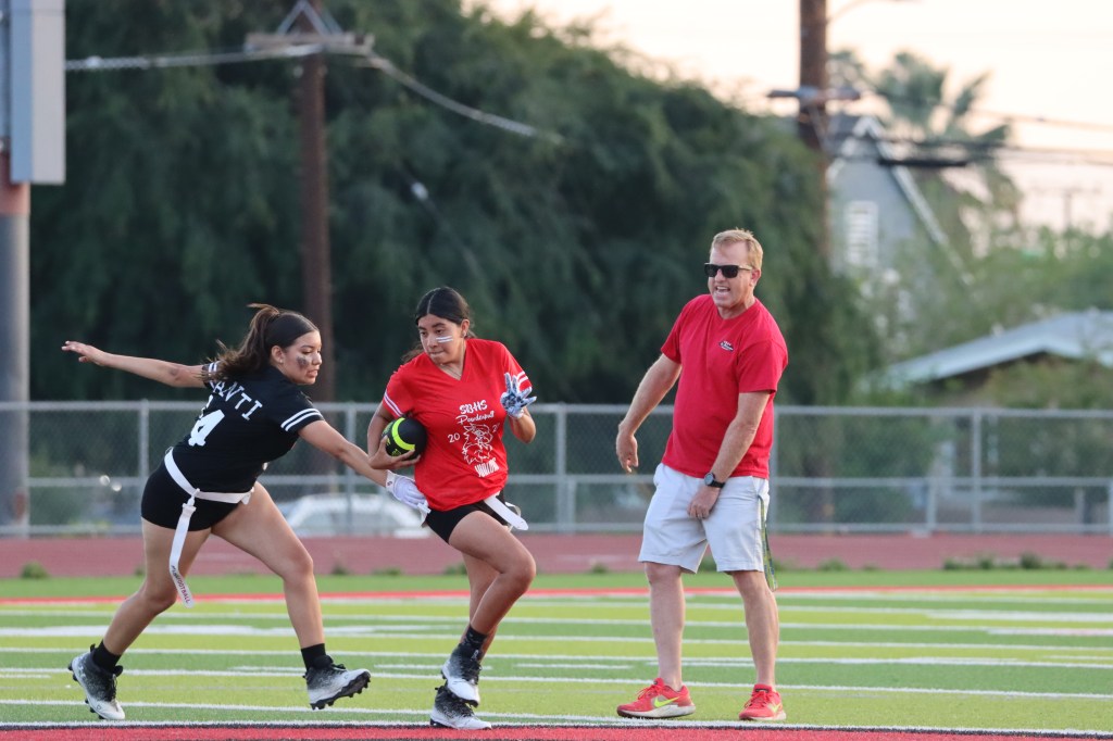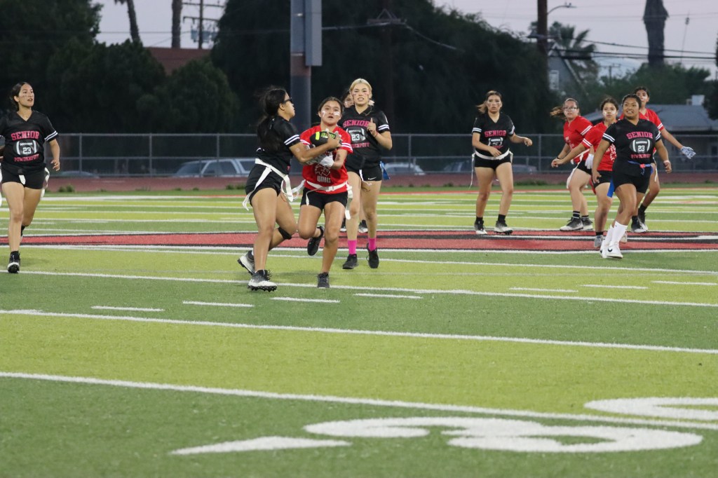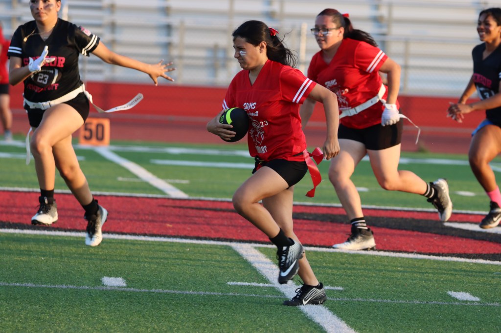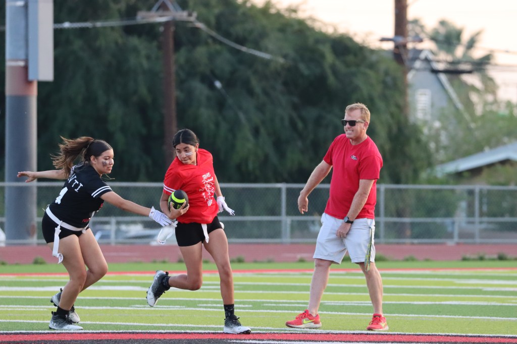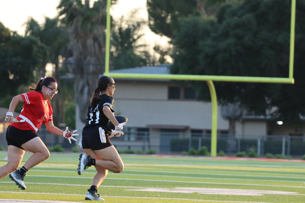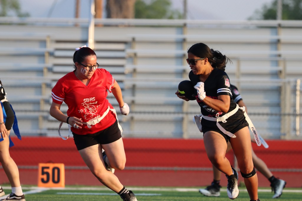The seniors showed up for the annual Powderpuff game against the juniors on Thursday, May 18, 2023. The seniors commanded the game from beginning to end, keeping the juniors out of the end zone. The final score was 28-0.