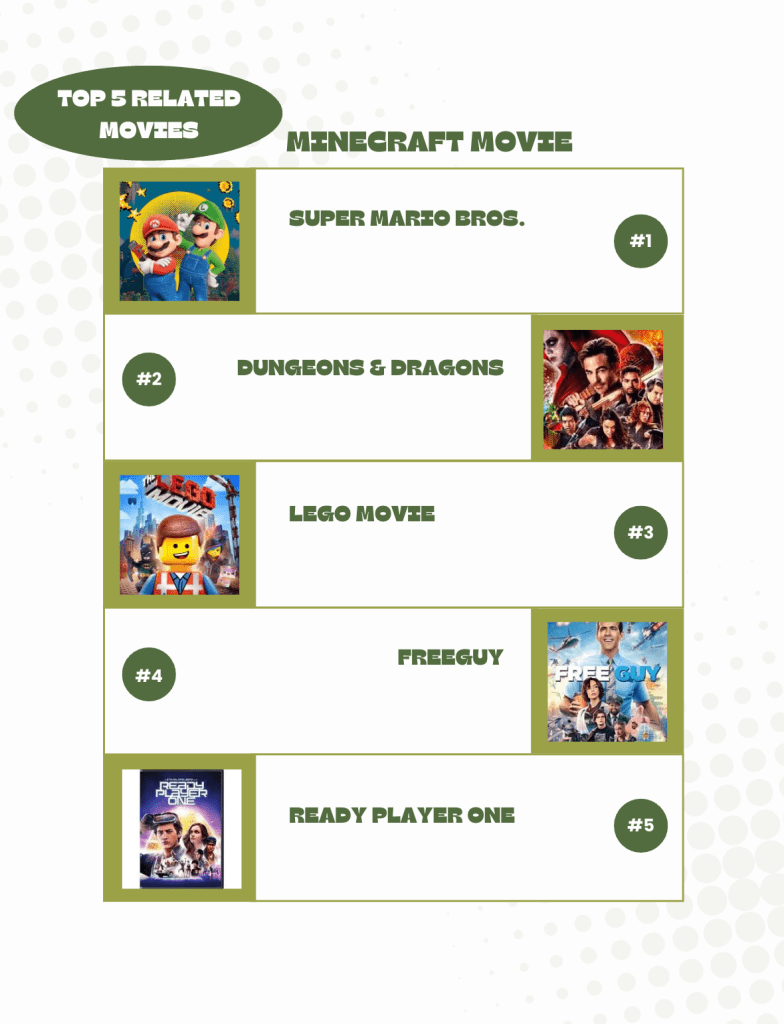 Either way, I enjoyed the movie, mostly the fighting scenes because it brought in game mechanics and it made game-like sense.. I like the memes that were made from the movie. The movie also reminded me of different movies. For example, “The Super Mario Bros Movie.” It is another movie about a famous video game and it’s similar to the Minecraft movie because it also has adventures, and the different worlds that the characters go to. There is plenty of action and comedy in both films. Another film that the Minecraft movie reminded me of is Dungeons & Dragons. People from the real world going inside of a game with dangers and peaceful times adding action and funny scenes.